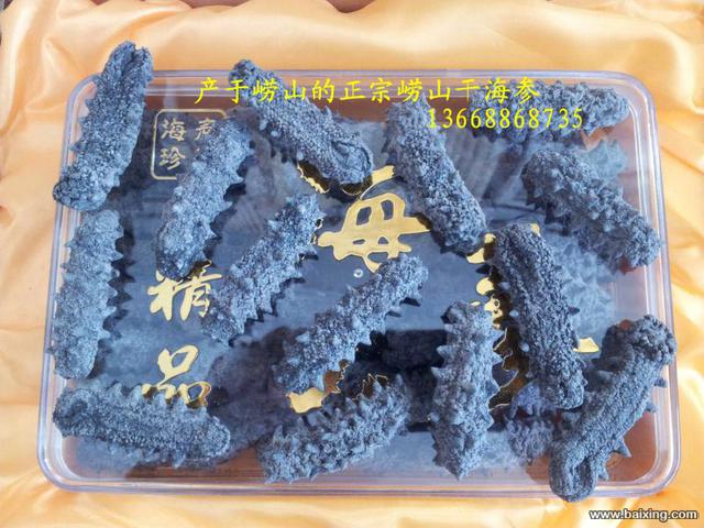 崂山干海参产于风景秀丽的崂山风景区内海域,无工厂、无企业,绿色无任何污染源,海区岩礁众多,海藻茂密,海底腐殖碎屑丰富,所产海参个体肥大,体近圆柱形,两端钝园,腹面平坦且管足密集,突棘粗大,肉质肥厚,多为灰黑色或黄褐色成参体长20-40厘米。海参加工采用土法天然晒制而成,保持了海参原有的营养成份,绿色天然。我家海参是野生养殖海参,如果是圈养的,那颜色保证能弄的很均匀很黑,所以这海参比普通池养海参营养高很多,经常食用海参的人,可从发泡好的海参口感判断其营养价值。我们承诺您到我家买的海参绝对是纯正野生海参 无论品相 肉质口感 涨发率 营养成分都算的上上品,老客户都知道我家是做批发的 自己加工,自己销售,省去了很多中间环节 让利给购买海参的朋友。